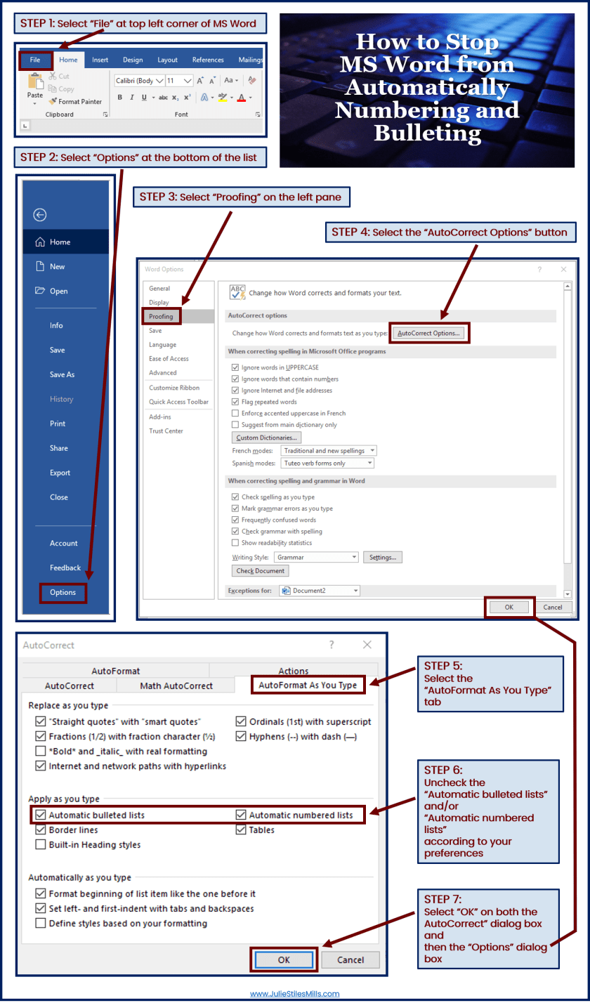 How to Stop MS Word from Auto Numbering and Bulleting For a printable PDF version, CLICK HERE Share: Click to share on Facebook (Opens in new window) Facebook Click to share on X (Opens in new window) X Click to email a link to a friend (Opens in new window) Email Click to print (Opens in new window) Print Click to share on Reddit (Opens in new window) Reddit Like Loading... Related